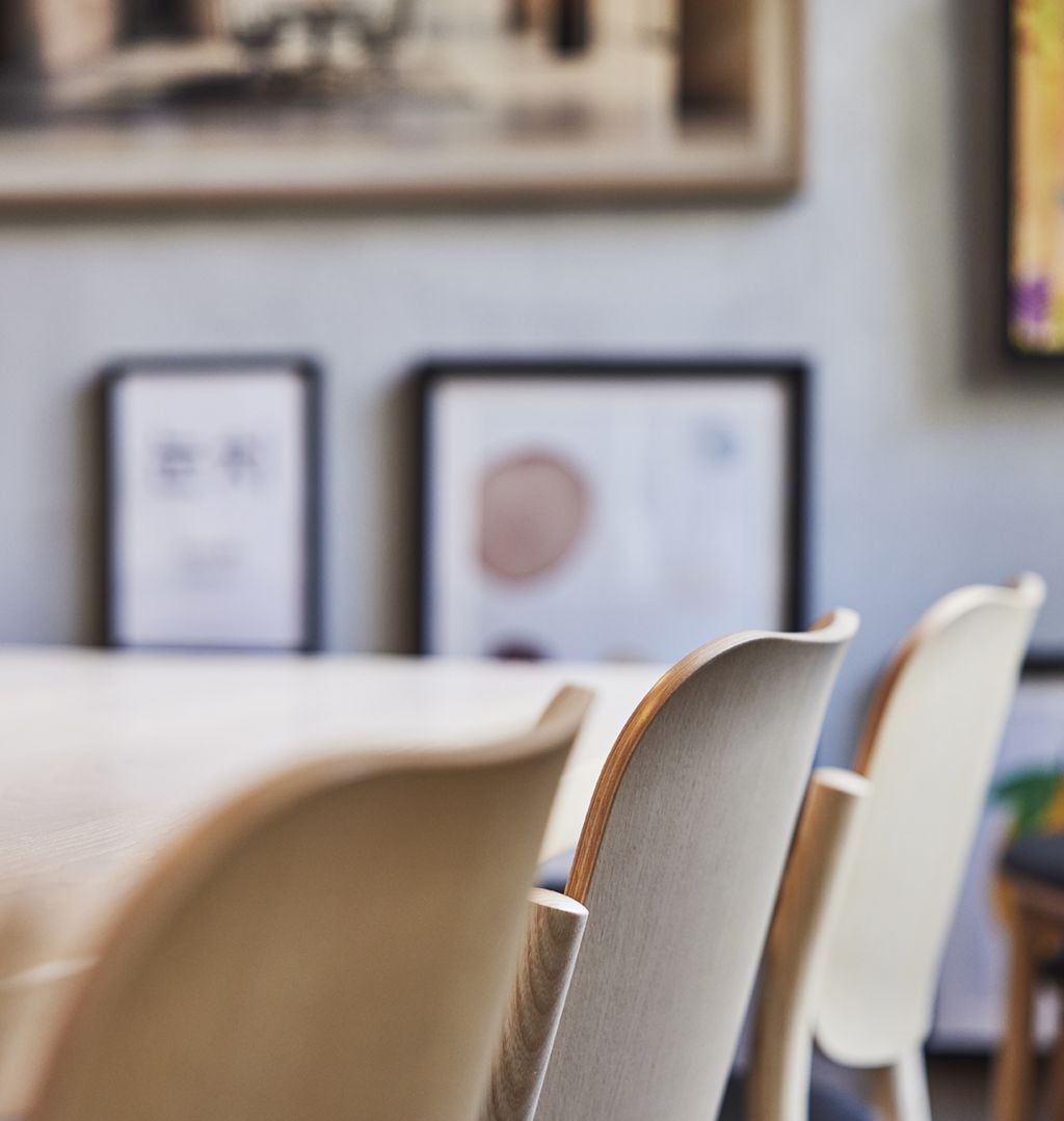 En lunchrast handlar om mycket mer än själva ätandet, så miljön i matsal ska inte bara vara praktiskt inredd utan också gynna umgänge och återhämtning. Satsa på den skandinaviska inredningsstilen och möblera med stolar i tidlös design och ljusa, neutrala färger eller låt färgerna på stolarnas stativ eller sitsar ge liv åt lunchrummet.