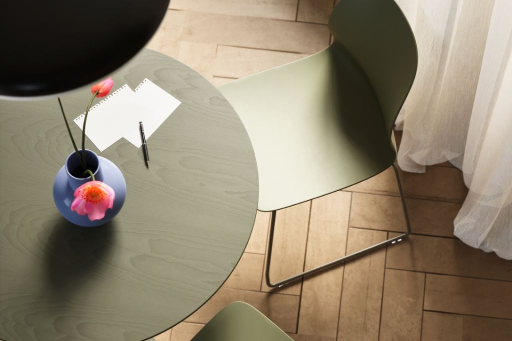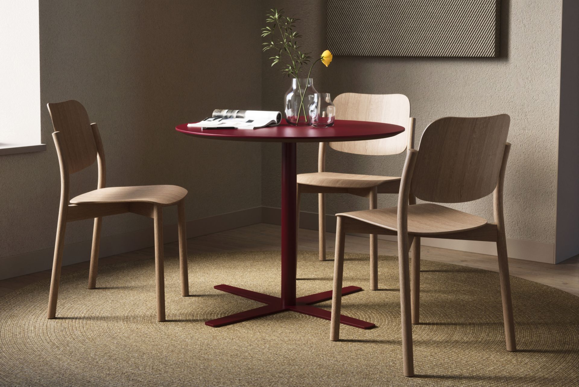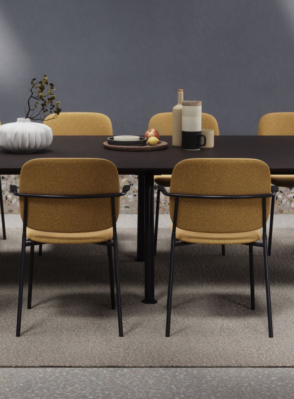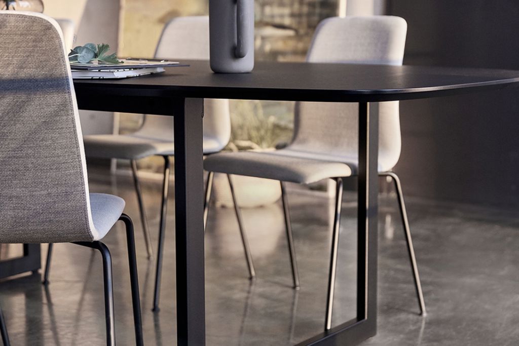 Skapa trivsel och rum för återhämtning i företagets kök med pinnstolen Zoe, här tillsammans med bordsben från Collaborate och specialgjord skiva.